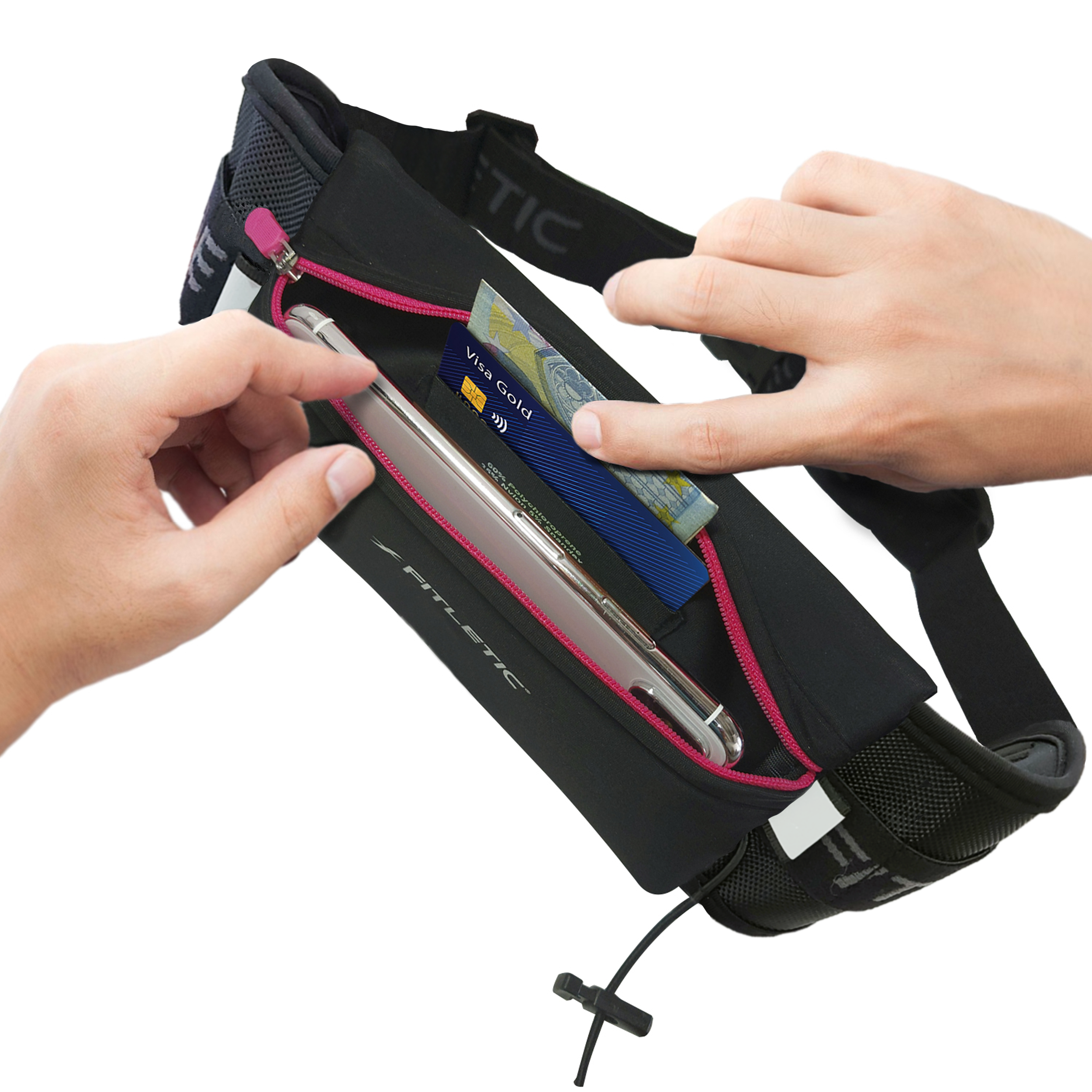 Η ελαστική θήκη από νεοπρένιο μπορεί να συγκρατήσει κινητό τηλέφωνο, ταυτότητα, βάλσαμο για τα σκασίματα στα χείλη, κλειδιά και άλλα προσωπικά αντικείμενα.